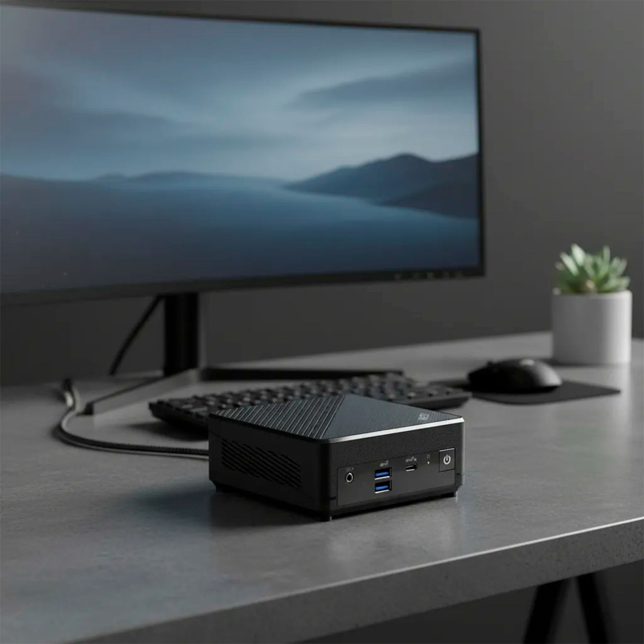 Mini PC compacto orientado a negocios y productividad, ideal para espacios reducidos y entornos profesionales que requieren eficiencia, estabilidad y conectividad avanzada. Su diseño de solo 0,66 litros permite una instalación flexible, incluso detrás de monitores gracias a su compatibilidad con montaje VESA.