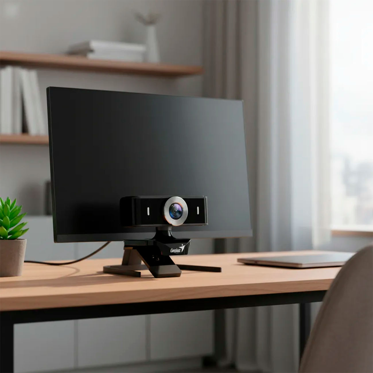 Cuenta con giro de 360° y clip ajustable de 180°, compatible con notebooks y monitores LCD, facilitando su instalación y adaptación a cualquier espacio de trabajo o estudio.